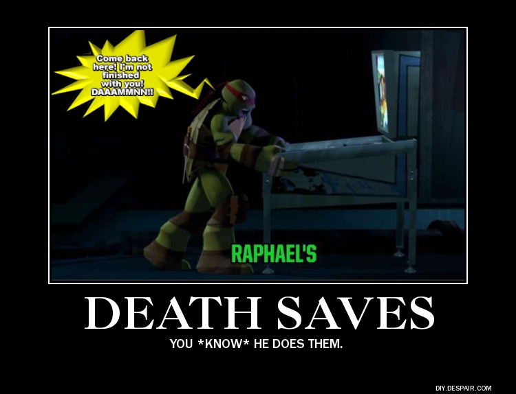 “The Death save is a technique players sometimes use in casual competition to send a ball draining down the right outlane back into the field of play. When the ball reach the outhole, the player raises the left flipper and pushes the game slightly forward and to the right. If the technique is performed correctly, the ball will rebound off of the metal guide leading to the center drain and rebound back into play.”