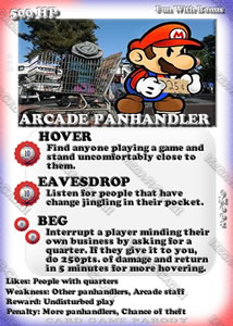 6: Beg – Interrupt a player minding their own business by asking for a quarter. If they give it to you, do 25 damage and return in 5 minutes for more potential hovering.