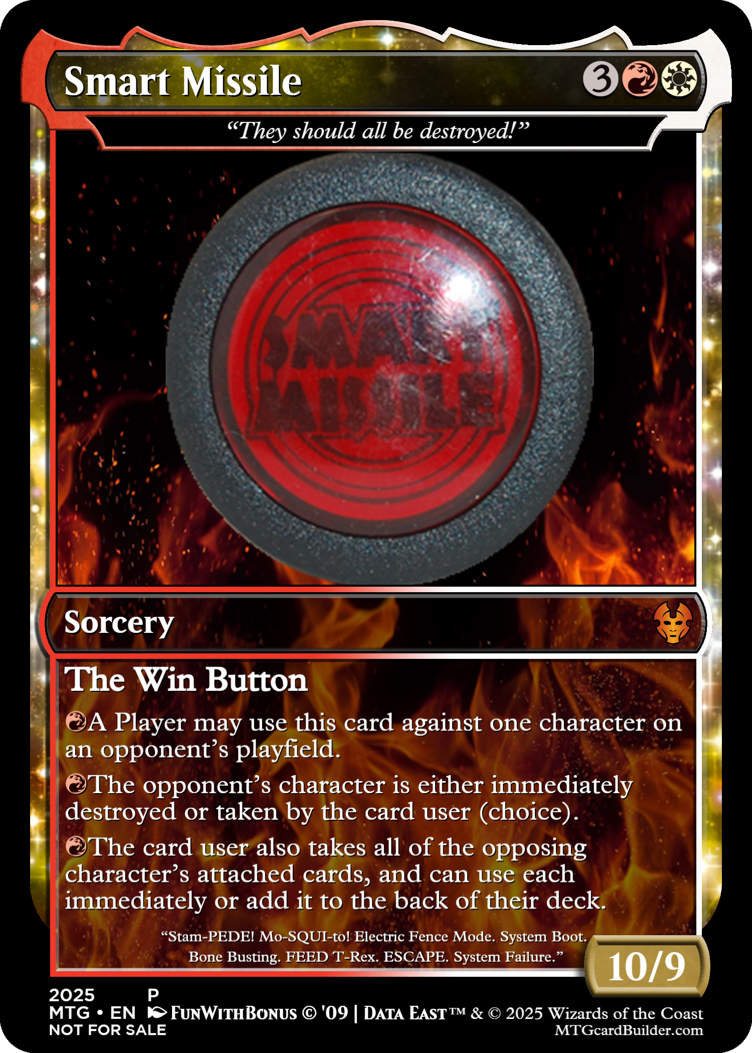 With these MTG custom card creators that are available, it’s time I remade those parody cards I put together back in twenty-whatever year I made them (a few of those were from as far back as 2002). I like the way the Disturbing Lack of Faith, Star Wars FOTE pinball parody card came out. I can update a few of those from the old mini-series 1 and 2. Like this one you see above that was from 2009, I think. Then I can go to the list I’ve been working on and add some new ones I’ve been thinking about, since it’s fun to make them. Really get the pinball memetic action going, ya’ know? I remember having fun. I should do that more often.
